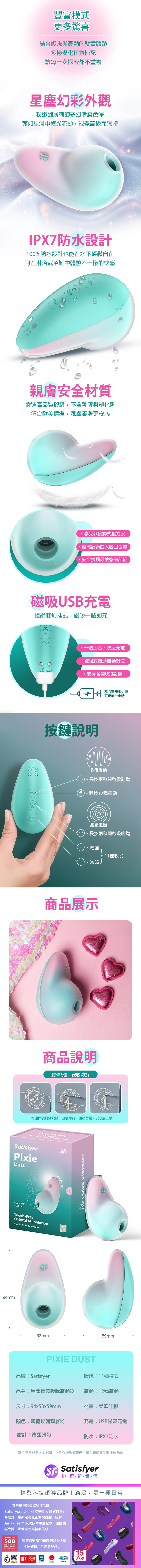 品名:Satisfyer|Pixie Dust 星塵精靈|漸層吸吮陰蒂震動器 綠粉