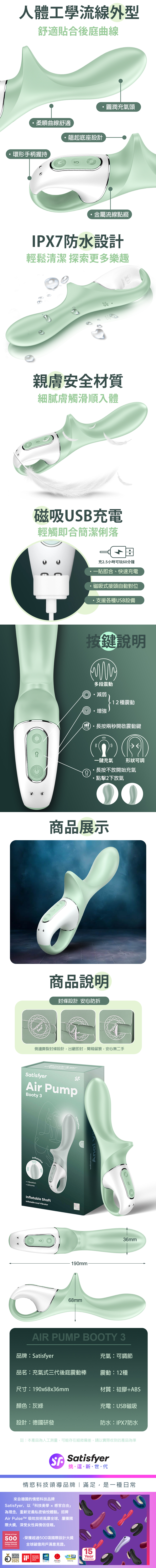 功能:充氣 + 震動 12 頻