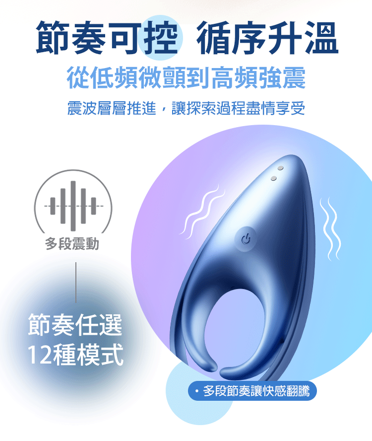 12 種震動模式:從低頻微顫到高頻強震,節奏隨心轉換。